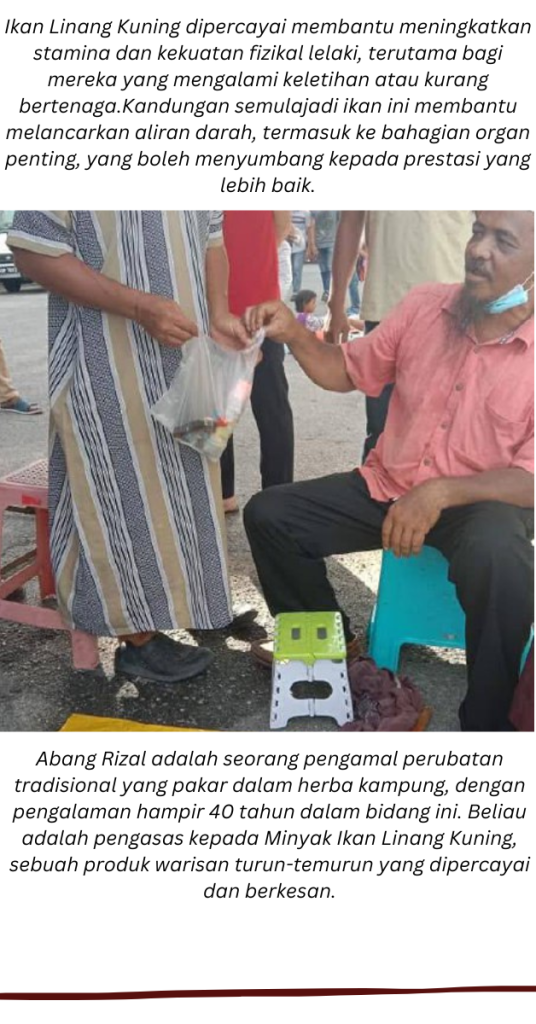 “ABANG RIZAL BERASAL DARI KAMPUNG MENUNTUT ILMU RAWATAN BATIN LELAKI PUN DARI AYAHANDA SENDIRI DARI KECIK,,ABANG RIZAL CARI SENDIRI HERBA DAN IKAN LINANG UNTUK DIMASAK MENJADI MINYAK UNTUK RAWAT BATIN LELAKI LEBIH 40 TAHUN”